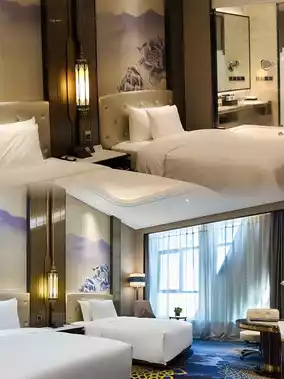 The room is spacious and well-designed, with comfortable bedding that ensures a good night's sleep. The facilities are complete and smart, with easy control of the lights and curtains. The bathroom is well-equipped, with a stable water pressure and high-quality toiletries. The large windows offer a great view of the city or the natural scenery, with different views in the morning and evening.