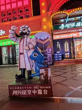At the exotic Xinjiang International Grand Bazaar, adorable cartoon sculptures can be seen everywhere—Afanti and his loyal companion, the little donkey. This famous folk wit, often dressed in traditional attire, greets visitors with a smile or stands beside vibrant neon lights alongside his blue-eared "comic" donkey, sometimes holding local delicacies. These lively sculptures not only add fun and vitality to the bazaar but also allow tourists to immerse themselves in a rich cultural atmosphere and a touch of childlike delight while exploring and shopping.