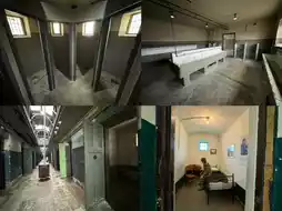 This prison is very unique. It is shaped like an octopus, with the middle as the center and 6 passages extending out. Each passage is a prison of about 4 or 5 square meters, with a small window of 10 square centimeters and some information about the Antarctic expedition team.