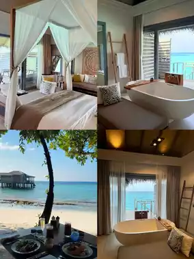 The resort on the island is simply synonymous with luxury and romance. I stayed in a water villa, and when I opened the door, I could see the endless sea. The private terrace is equipped with comfortable loungers and stairs leading directly to the sea, so you can jump into the sea and swim at any time. The interior decoration of the room is full of tropical style, with wooden furniture and soft bedding, warm and comfortable. At night, I fell asleep with the gentle sound of the waves, and in the morning, I woke up with the gentle touch of the first ray of sunshine. This life of being close to the sea is really healing.