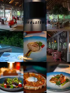 The dining options are also incredibly rich. Lagoon Bar was our relaxation spot. Standing on the bar's high platform, overlooking the entire lagoon, we ordered a special cocktail recommended by the bartender and watched the sunset paint the sky golden pink. The sea breeze gently caressed our faces, creating a very romantic atmosphere. The Onu space, built with bamboo structures, felt like being in a tropical rainforest. It blends Vietnamese, Thai, Indonesian, and other Southeast Asian flavors, with sour and spicy notes intertwined with coconut aromas, paired with delicious meals, making this dinner the most flavorful travel experience in my memory. Amaany's breakfast was excellent, with a bright and airy space, soft sand stretching at your feet, neatly arranged fresh fruits and smoothies, and every dish carrying the warmth of being "treated with care." You can enjoy breakfast while gazing at the horizon, savoring the cleanest, purest morning time. Vakku is the island's signature restaurant, specializing in charcoal grilling. Whether it's A5 Wagyu, lobster, or freshly grilled king crab, paired with red wine recommended by a professional sommelier, the fire pits outside the restaurant and the sound of waves intertwine to create a haute couture-level natural theater. Isoletta is the most vibrant restaurant on the island. By the poolside, with Milanese-style seating and the aroma of wood-fired oven pizza, it felt like being instantly transported to a Southern European town. That day, I ordered seafood pizza and a glass of sparkling wine, sitting comfortably for an entire afternoon, forgetting the time and the pace of the city.