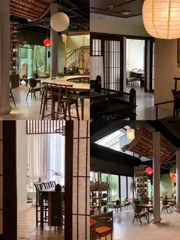 The atmosphere is calm and refined, with natural wood tones, soft lighting, and curated greenery that evoke a sense of quiet elegance. Whether you’re seated by a window with sunlight filtering through linen curtains or tucked into a quiet corner with a book, the space encourages stillness and presence.