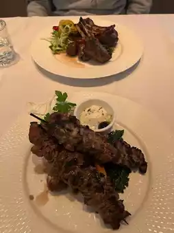 I was too lazy to go out at night, so I ate at Hydra🥂, which has a high Google rating downstairs from the hotel. The lamb chops were very good and juicy👍, but the beef skewers were average, not recommended🙅♀️. It was cold when it first came up.