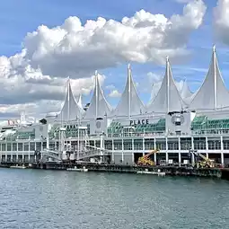 Canada Place, located near the Vancouver downtown waterfront and Waterfront Station, is one of Vancouver's landmarks.