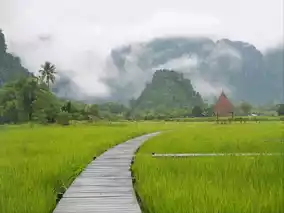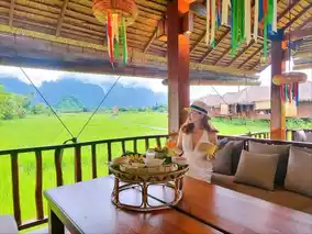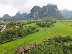 #Laos Travel 𝙑𝙞𝙚𝙣𝙜𝙏𝙖𝙧𝙖 𝙑𝙖𝙣𝙜𝙑𝙞𝙚𝙣𝙜 𝙍𝙚𝙨𝙤𝙧𝙩 The check-in point for both accommodation and attractions is surrounded by mountains, rice fields and rivers.