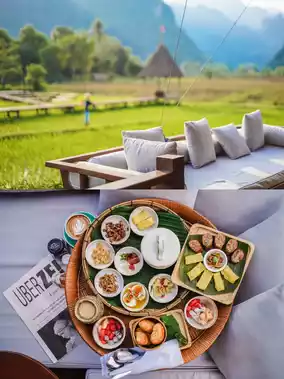 The hotel has a solid understanding of how to operate an influencer hotel, providing rattan tote bags, wicker suitcases, and bicycles for guests to use for photography. Breakfast is worth mentioning, as guests can select their desired set meals and dining times the night before, and they will be delivered punctually to the room's terrace the next day, with great presentation, but not necessarily filling. Initially, we thought that one set was one basket, but after waiting for a long time without seeing any service staff come, we found out that two breakfast sets were put together in one basket.
