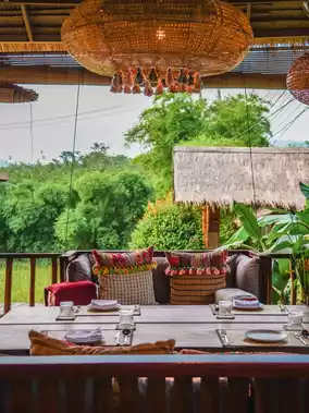 There are three room types available at the hotel, and it is highly recommended to avoid choosing non-villa rooms that face the street. There are eight villas with stilted legs in the rice fields, and both the Deluxe and Junior rooms are identical, with the only difference being that Junior ones are deeper in the fields, offering better views. However, the Deluxe rooms are more than sufficient, especially room number 4, which is not much different from the Junior ones.