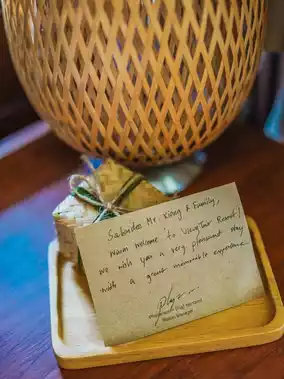 Mini bars in the rooms are free of charge, and a complimentary gift bag containing "V"-branded rice cakes and a handwritten welcome note are also provided.