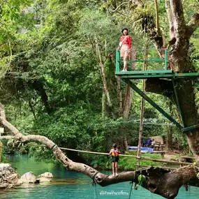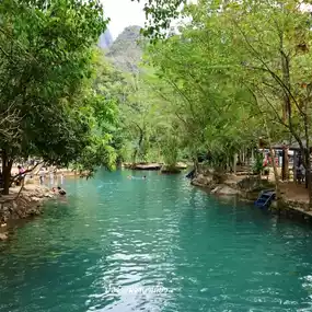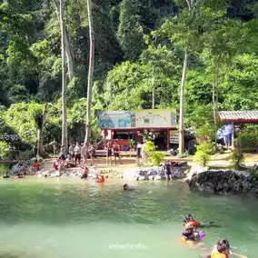 Blue Lagoon is also surrounded by a very natural forest. Nearby is Tham Pu Kham and there are shops and restaurants to serve tourists.