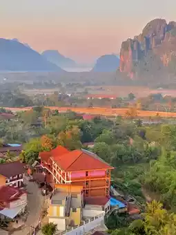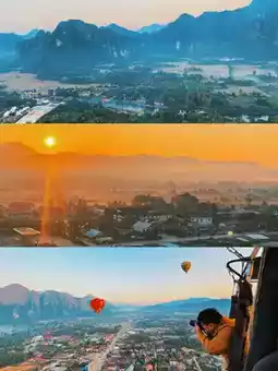 Hot air balloons are in the outdoor paradise of Vang Vieng. You can take a train from Luang Prabang (about 1 hour) or a minivan from Vientiane (2 hours) for easier access.