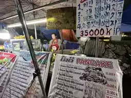 Went out to find dinner. Got a pork pan at a shop near the Song River. After eating, walked around and stopped to buy roti, a famous dish of Vang Vieng. It was delicious as the rumors say. Returned to the hotel to rest.