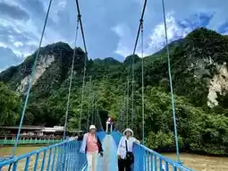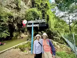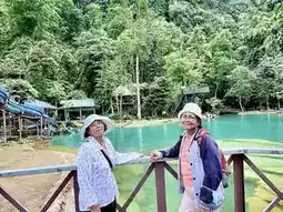 Back to check out, left the bags at the hotel, and rented a car at the hotel for 200 baht per person. Visited Blue Lagoon 1, 2, the emerald pool, checked in at Tham Jang, and took pictures with the blue bridge. Then, we were dropped off at the train station. The Vang Vieng trip ended with fun.🥰🥰