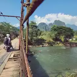 🛵 Location and transportation: You can rent a motorcycle in Vang Vieng city and arrive at Nam Song River Bridge in about 10 minutes. You can easily rent a motorcycle in the city.