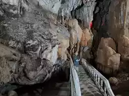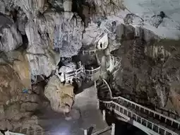 When you reach the front of the cave, there will be another resting point. When we walk into the cave, there will be a fork in the road, an entrance and an exit that connect to each other. There is a bridge connecting each point. In the cave tunnel, there are stalactites and stalagmites that sparkle.