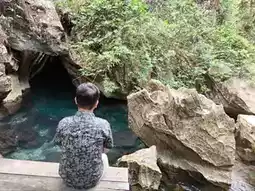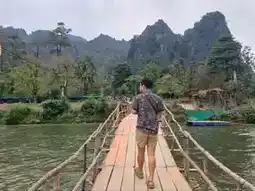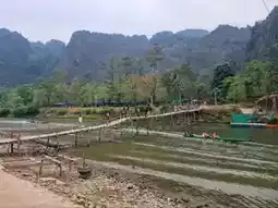 There are 2 points to pay for the fee: through the gate, which is the resort area. When you pass the gate, you have to park your car and cross the river to the cave. Before, there was an orange bridge at this point, but now it is broken. The place has made a wooden bridge for you to cross.