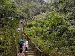 Point 2: Buy tickets at the entrance to the cave. Walk up the stairs that are not very high to the cave on the top of the mountain. Along the way, there will be places to stop and rest. There is a view of the rocky mountains and the forest on the side.