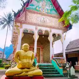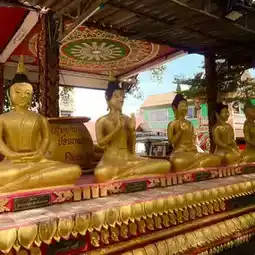 When you enter the temple from the gate, you will see the sitting big Budha Statue. There is also a reclining Budha Statue in Wat Kang. In the front of Reclining Budha, you can find four smaller Budha Statues.