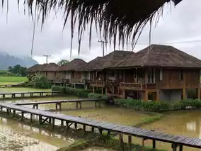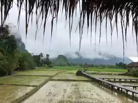 Staying at ViengTara VangVieng Resort in Vang Vieng is an experience that perfectly blends simplicity with the beauty of nature. This resort is nestled amidst lush green rice fields and stunning mountain views, especially in the morning when a light mist adds to the charm of the atmosphere.