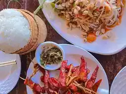 I have to say the food is really delicious. Recommend!! If you go, you must try it. Be careful when ordering because the portions are huge. The prices are reasonable too. The grilled pork, grilled chicken, and Tam Sua are really tasty. You can even taste it first to see if you like it. The Pho comes in a very large bowl. This restaurant is really delicious. If you're in Vang Vieng and don't know what to eat, I recommend this place.