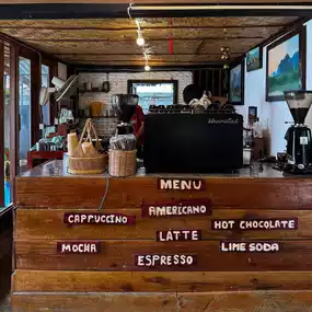 This is another cafe with a very beautiful view. It's perfect for sitting and sipping coffee, eating a chill meal, and enjoying the beautiful mountain view as far as the eye can see. If it's raining, I must say that it's very beautiful. In addition, the shop also offers a variety of food and drinks. This is another shop in Vang Vieng that I highly recommend. You won't be disappointed. 😍😍