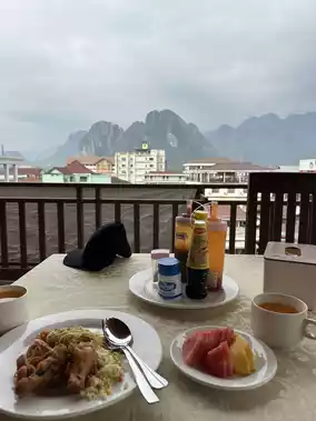 This hotel is near the bus station. If you take the bus to Vang Vieng, you can walk to the hotel.
