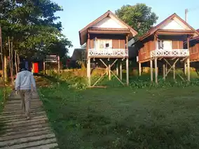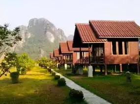 Atmosphere: The atmosphere is fantastic. In front of the accommodation is the Nam Song River, and behind it are stunning mountains. During the day, you can sit by the river and relax. In the morning, you can enjoy the mist behind the accommodation. It's an amazing experience. The rooms are small, but the view is worth it. If you come here, I highly recommend staying here. It's worth the price and close to Vang Vieng town.
