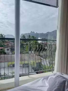 ⛰️ Mountain scenery typical of Vang Vieng can be seen from the window