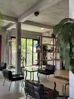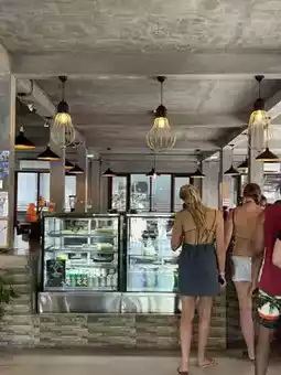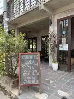 Let's recommend a cafe in Vang Vieng. This place is called Naked espresso. It's a cafe that serves both drinks and food. The shop is easy to find. You can follow Google Maps. It's exactly right. You can park your car in front of the shop. The shop is a beautiful exposed concrete building on the side of the road. There is a large yellow sign that stands out.