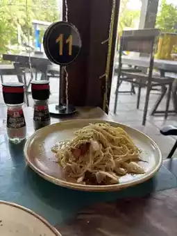 The shop has a variety of drinks, coffee, tea, and smoothies. There is also a food menu. You can come and eat here. The menu that we ordered was Spaghetti Carbonara, Pad Krapow Rice (the rice menu is similar to Thailand. There is also Pad Thai). The price is the same as a cafe in our country. Food and drinks cost around 100 baht per menu. The taste is good. It's similar to Thailand.