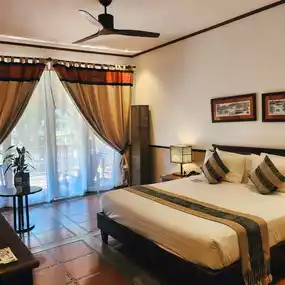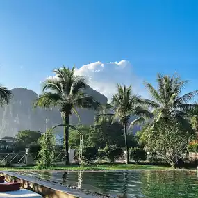 🏩 What a wonderful place to stay in Vang Vieng! The location is amazing, breathtakingly beautiful, with views of the Song River and towering mountains in the distance. In the evening, we could watch the sunset over the beautiful mountains, as hot air balloons and paragliders soared over the stunning natural scenery. 😍🥰 The room was also superb, spacious, well-appointed, with comfortable beds and a spacious balcony with outdoor seating. They also have a large swimming pool, which is beautiful and a perfect place to watch the sunset and enjoy half-price cocktails during Happy Hour from 5:00 PM to 7:00 PM daily. 👍🏻👍🏻 Another highlight is the excellent breakfast. The Restaurant du Crabe d'Or is a wonderful place, overlooking the pool, the Song River, and the mountains. We also had dinner there one night, and the food was excellent. However, the best part is the staff and the service we received. We were always greeted with a smile and never had any problems.