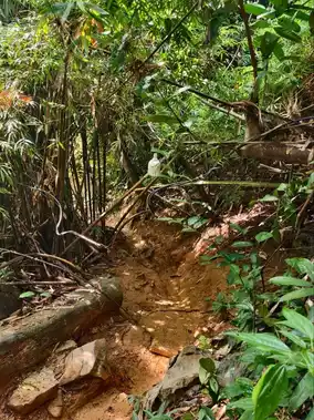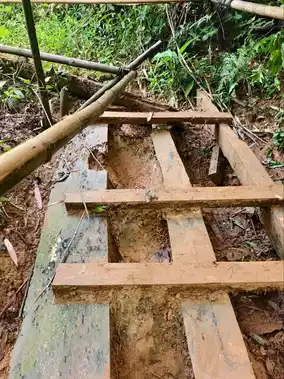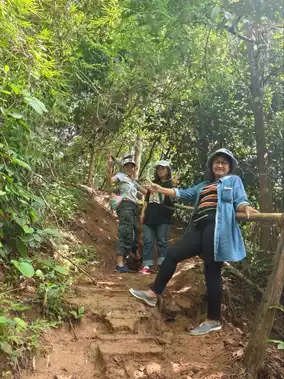 Wearing proper footwear is essential, as many of the climbs require climbing over rocks. However, the ascent is now easier with bamboo railings to hold onto along the path. At some points, there are stairs and vines to cling to. It's an easy climb, and once you reach the top, you can enjoy both stunning views and cool photos with the motorbikes on both sides.