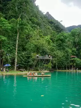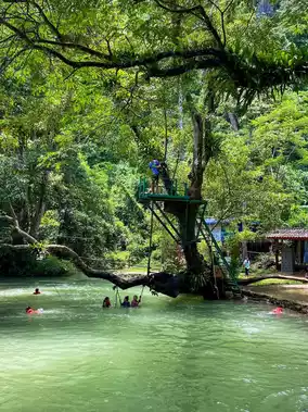This place offers everything from lush green mountains, a crystal-clear river, and breathtaking stalactite and stalagmite caves that are so beautiful you'll feel like you've entered another world. ✨