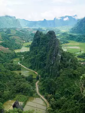 Vang Vieng... a small town nestled in the valleys of Laos, filled with natural charm and tranquility. 🏞