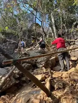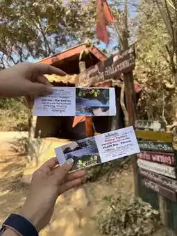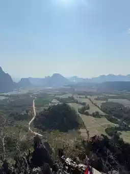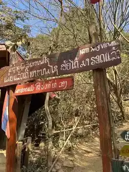 Pha Nam Sai is a viewpoint that you shouldn't miss when you come to Vang Vieng. To get to the viewpoint, you can open Google Maps and follow the route. The route is quite difficult. The road is full of rocks. You have to drive carefully. There is a fee to enter the viewpoint of 10,000 kip (20 baht). Then walk up.