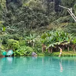 Blue Lagoon 3 In my opinion, going to play in the water at all 3 Blue Lagoons has its own charm and beauty. But if you ask me which one I like and am most impressed with, I would say that I am most impressed with Blue Lagoon 3 because the view is beautiful and the water is very clear. Most importantly, there are many activities to do, such as ziplining, kayaking, floating on a rubber ring, and playing in the water. Every activity is fun and exciting.