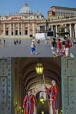 In 1929, Italy signed a treaty with the Pope, and the Vatican was recognized as a sovereign state. St. Peter's Square in front of St. Peter's Basilica was designed by the famous architect Bernini and can accommodate 500,000 people. The border is clearly marked on the square.