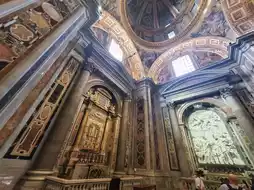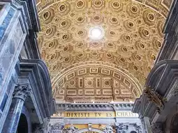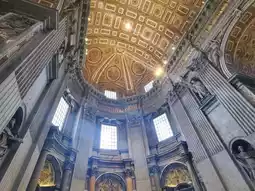 When you step inside the cathedral, you will be overwhelmed by its vast space. The huge dome, approximately 211 meters long and 136 meters high, was designed by Michelangelo and stands majestically above the central altar.