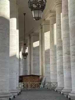 🤲 The Motherly Embrace: Four rows of 284 towering travertine columns and 88 pilasters sweep outward in two vast semicircles. Bernini envisioned them as "the maternal arms of Mother Church" (braccia materne della Chiesa), opening to receive Catholics and heretics alike into her bosom. The perfect rows create a thrilling play of perspective and hide surprises within.