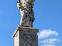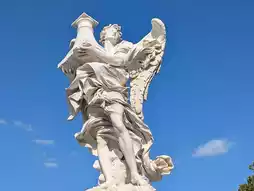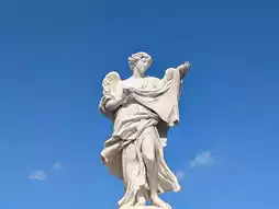 Castello's name stems from a legend: During the plague of 590 AD, Pope Gregory I saw the angel St. Michael appear on the castle's summit. He sheathed his sword, symbolizing the end of the plague. From then on, Hadrian's Mausoleum was renamed "Castle Sant'Angelo," and a statue of St. Michael with his sword drawn was erected on top. The bronze statue we see today was recast by Peter Anton von Verschaffelt in 1753.