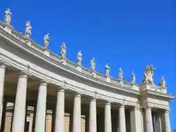 The colonnade is made up of four rows of columns and is topped with 140 statues of saints.