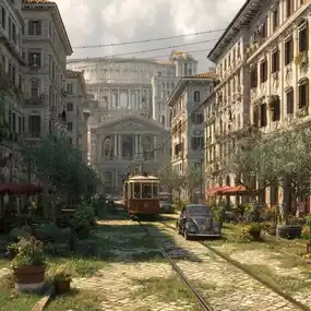 Between sunlit domes and ivy-covered walls, Rome feels like a dream painted in gold and green. Here, time slows down β vintage cars rest under terracotta facades, trams glide through overgrown boulevards, and canals mirror centuries of beauty and decay.