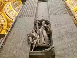 The architecture showcases Renaissance and Baroque styles, with contributions from several architects and artists, including Donato Bramante, Raphael, and Michelangelo. The design of St. Peter's Square was created by Gian Lorenzo Bernini. Inside the basilica, numerous masterpieces from the European Renaissance period, such as frescoes and sculptures by Michelangelo and Raphael, are well-preserved. The entire basilica is resplendent and magnificent, with intricate details from statues to the flooring.