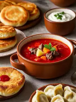 - Borscht: A must-try in Russia! This beet soup is rich and sweet, with beef, potatoes, and carrots. A warm bowl of borscht is perfect for cold weather.