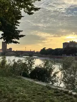 As the sun began to lower, we made our way to the Adige River, crossing the Ponte Pietra, Verona’s oldest bridge. The golden hour hit the water just right, casting a soft amber glow over the city. I walked along the riverbank, the sky melting into pinks and purples, bells chiming in the distance, and the breeze carrying the scent of blooming oleander.