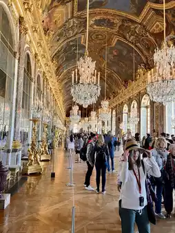 Stepping into the Hall of Mirrors, I was overwhelmed by the dazzling brilliance as light reflected and spread throughout the room. Every ceiling painting carried meaning, and the chandeliers exuded a sense of craftsmanship.