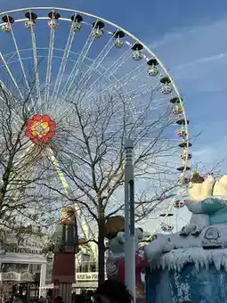 This time, we visited the heart of Vienna and made a special trip to Prater Amusement Park, known locally as Prater Wien! The park offers free admission, so no tickets are required! One of the biggest highlights is the world's oldest operating Ferris wheel! The cabins are vintage red and were featured in the movie 'Before Sunrise.' It's truly unique!