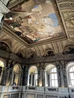 The building itself is museum-quality. The ceiling painting in the stairwell and the café under the dome are breathtakingly beautiful.