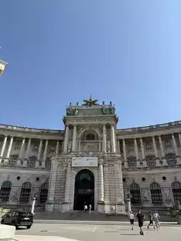 We visited Hofburg Imperial Palace 🏰☀️ on a bright summer afternoon, with sunlight bouncing off the white walls and cobblestones warm under our feet. We wandered through the grand courtyards, past horse-drawn carriages 🐎, and under towering arches that made everything feel timeless. It felt like walking through a story one told in stone, gold, and soft echoes.