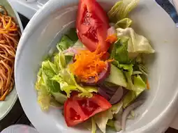 The salad in the photo was complimentary, and after the meal, the restaurant also offered a dessert that tasted like crème brûlée.