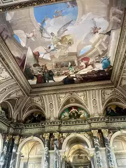 The domed ceiling in the central hall and the lavish marble staircase are also highlights, making the building itself a work of art.